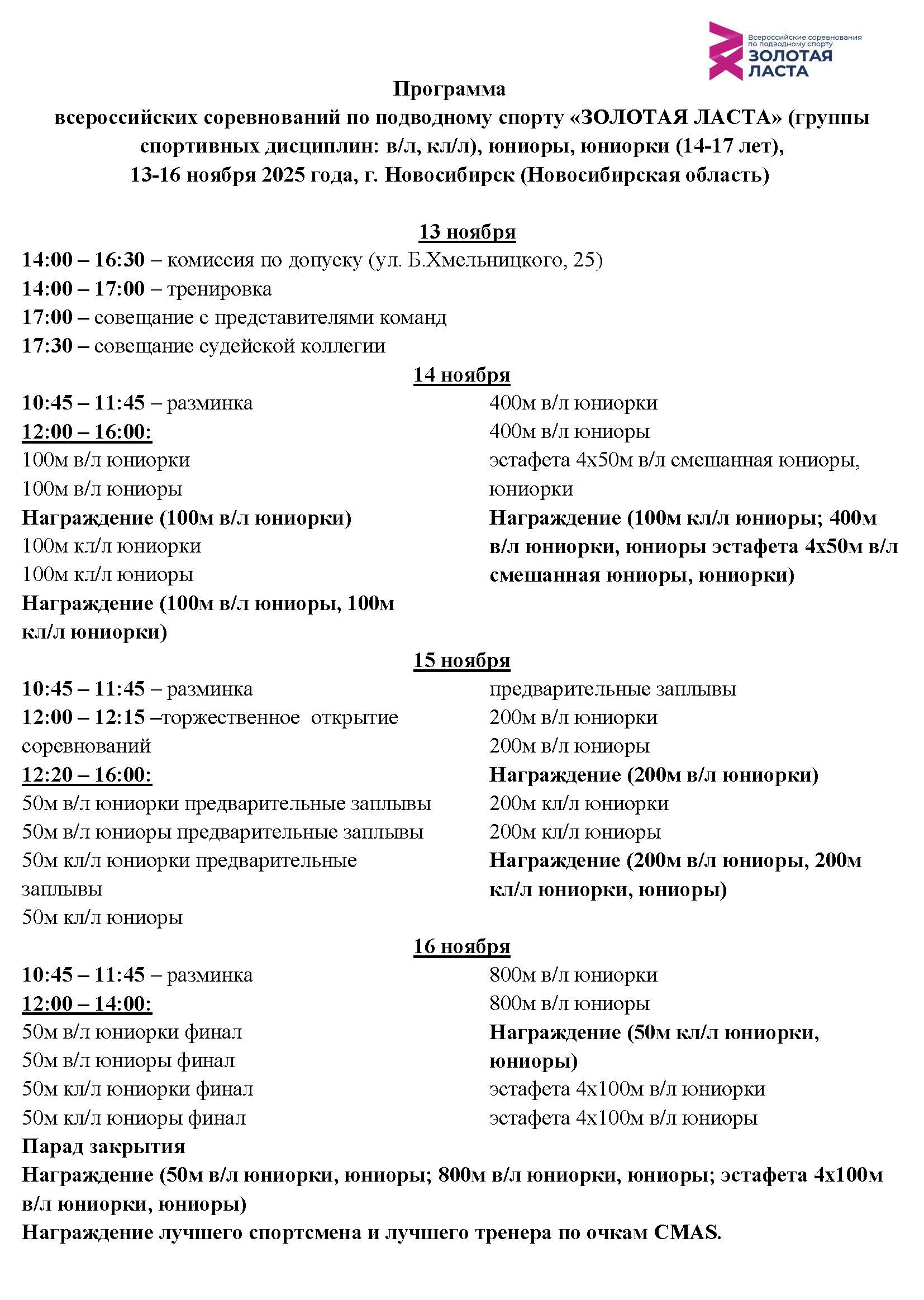 «Золотая ласта» – смотр  сил лидеров юниорской команды страны и взрослой сборной России.